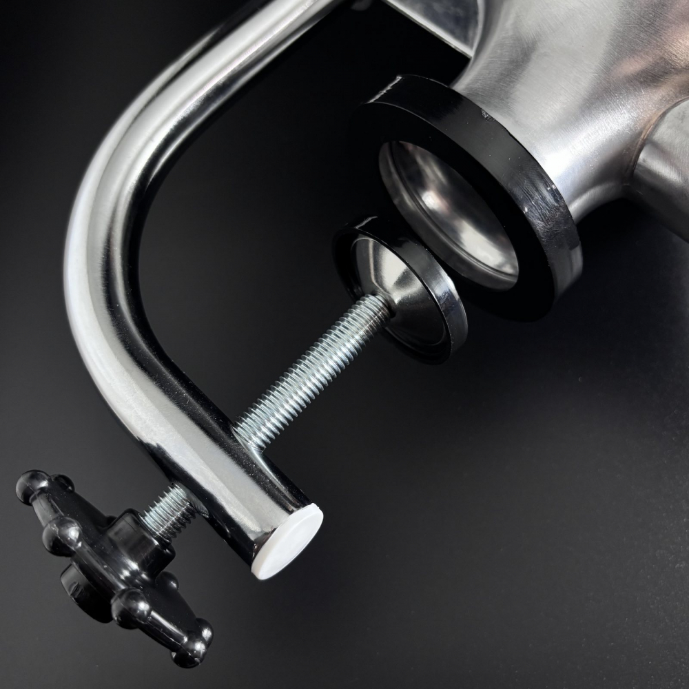 - Силіконовий ущільнювач: Поршень оснащений спеціальним силіконовим ущільнювачем, який запобігає зворотному видавлюванню фаршу, забезпечуючи рівномірне наповнення ковбасних оболонок.