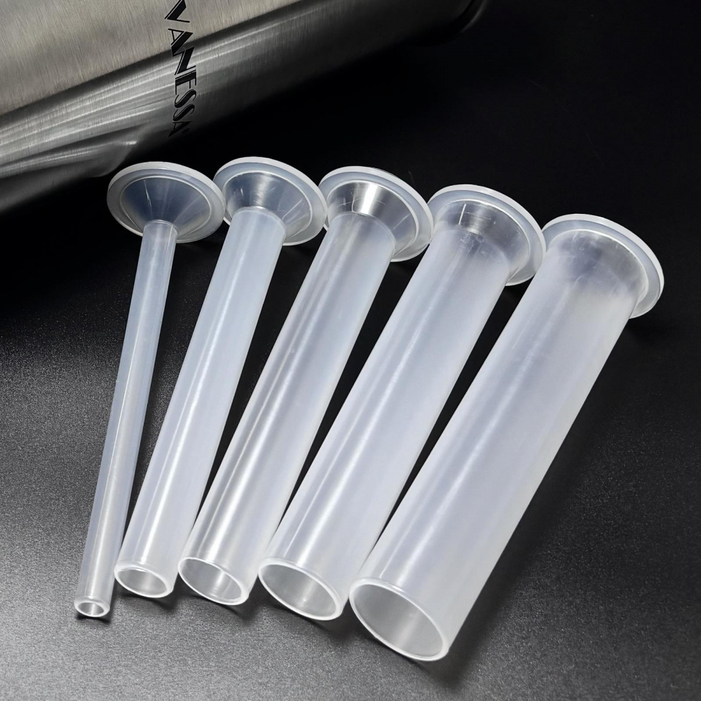 - 5 змінних насадок: У комплекті ви знайдете шість насадок діаметром 7, 17, 21, 25 і 29 мм. Це дозволяє вам експериментувати з різними розмірами та видами ковбас, від тонких мисливських до товстих кров'янок.